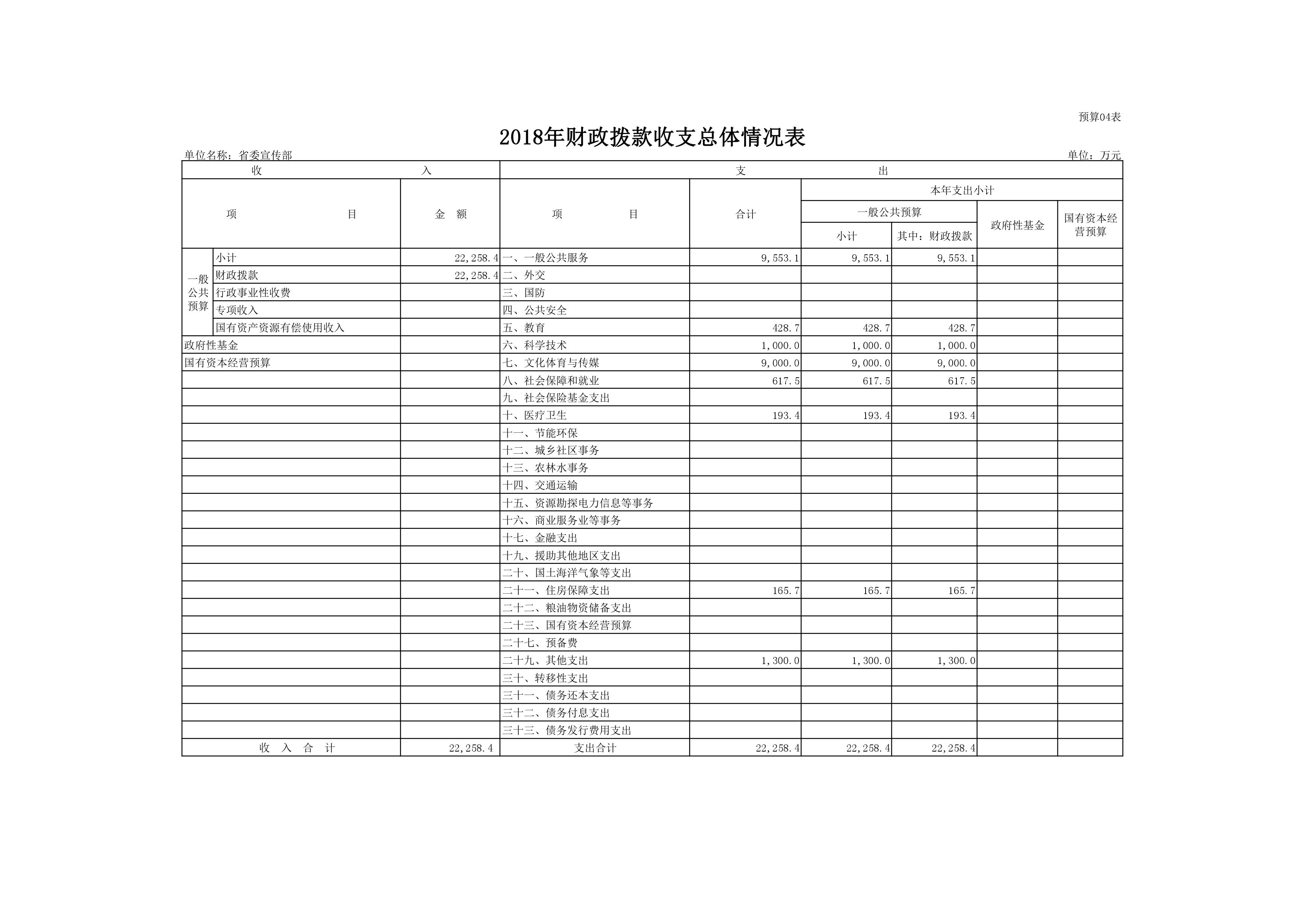 2018年度中共河南省委宣傳部部門預(yù)算公開